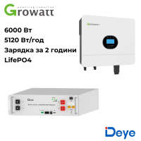 ДБЖ для дому Growatt SPF 6000 ES Plus 6кВ + Deye SE-G5.1Pro-B LiFePO4 5,12 кВт/год